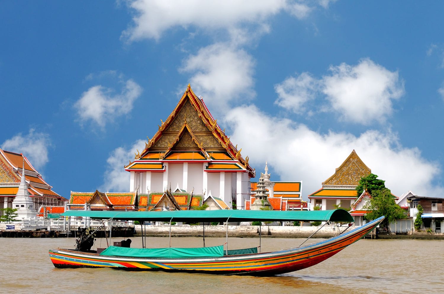 Vain lyhyen kävelymatkan päässä palatsista saapuvat Chao Phraya -joen rannalle. Tämä suuri joki kulkee tiensä Bangkokin läpi ja määrittelee kaupungin kuin mikään muu maamerkki. Kun seisominen joen varrella tarjoaa hienoja näkymiä, sinun on todella päästävä veteen arvostamaan sitä. Sinun ei tarvitse tehdä mitään erityistä, vain hyppäämällä paikalliselle veneelle joen ylittämiseksi tai ylöspäin ylös ja alas, se näyttää kaupungin tuoreesta näkökulmasta.