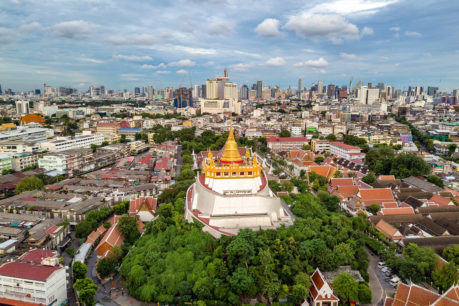 58 metrin korkea temppeli, joka tunnetaan ymmärrettävästi Golden Mount. Aluksi puiden ja viiniköynnöksen ympäröimä sinut ympäröivät sinut kerran hautausmaalla, ylhäällä sinua kohdellaan fantastisia näkymiä Bangkokin kaupunkikuvaan. Polkujen vuoraaminen on kelloja, jotka palvojat soivat onnea varten, lisäämällä edelleen tämän rauhallisen temppelin ilmapiiriä.