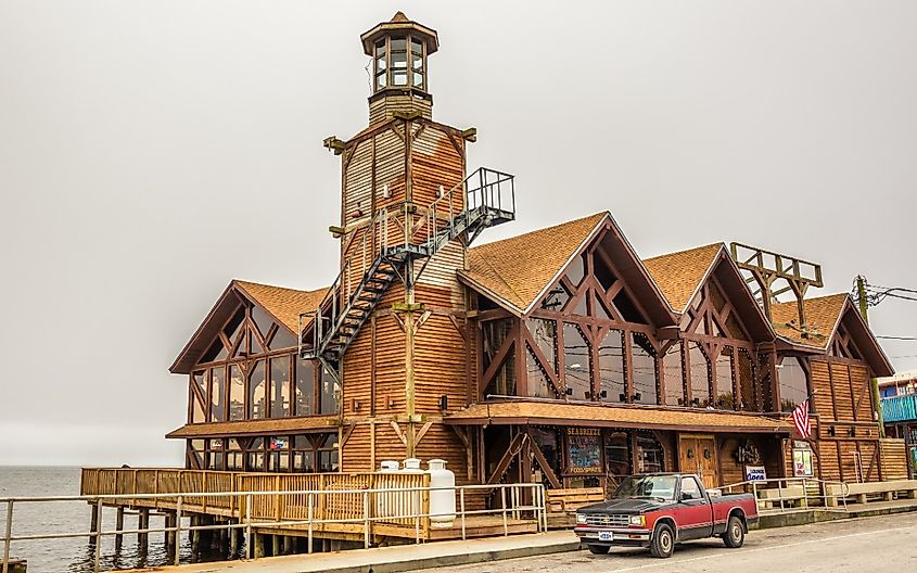 Sea Breeze -ravintola, jossa on historiallinen majakka Cedar Keyn keskustassa, Floridassa. Kuvan luotto Nick Fox Shutterstockin kautta