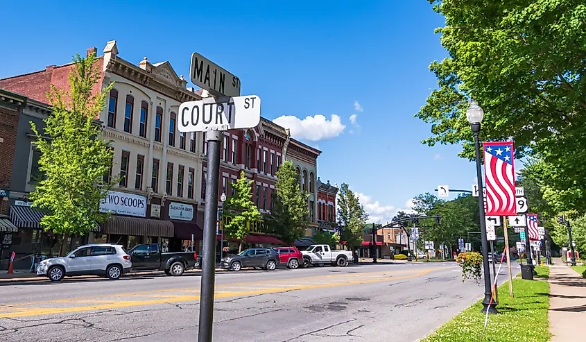 Main Street Coudersportissa, Pennsylvaniassa. Toimituksellinen luotto: Nolichuckyjake / Shutterstock.com.