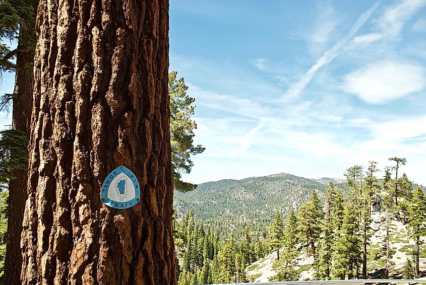 Tahoe Rim Trail -merkki lähellä Kingsbury Southin polkupäätä, Stateline, Nevada. Kuvasaldo EWY Media Shutterstock.comin kautta