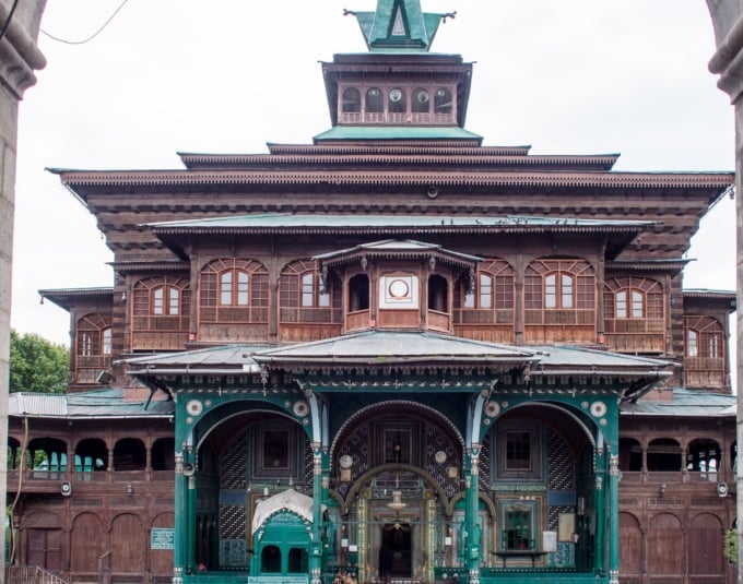 Kun ajattelet moskeijaa, kuvittelet todennäköisesti klassisen pyöristetyn kupolin. Srinagarin kaltaisilla alueilla, joilla on lumisade, monet moskeijat ovat kuitenkin ottaneet huomioon terävät kolmion katot estämään lumen painon aiheuttamasta vaurioita. Shah Hamdan -moskeija on yksi sellainen esimerkki.