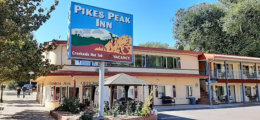 Pikes Peak Inn on perheomistuksessa oleva motelli Manitou Springsin keskustassa, Colorado. Toimitusluotto: Photo-Denver / Shutterstock.com.