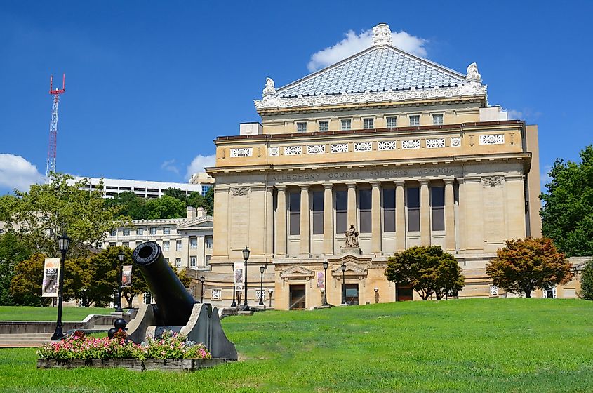 Sotilaat ja merimiesten kansallinen sotilasmuseo ja muistomerkki on historiallisten paikkojen kansallisessa rekisterissä Pittsburghissa, Pennsylvaniassa. Toimitusluotto: Sean Pavon / Shutterstock.com