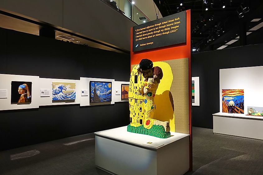 Näkymä tiilen taiteesta, maailman suurin Lego -näyttely Carnegie Science Centerissä Pittsburghissa, Pennsylvaniassa. Toimitusluotto: Eqroy / Shutterstock.com