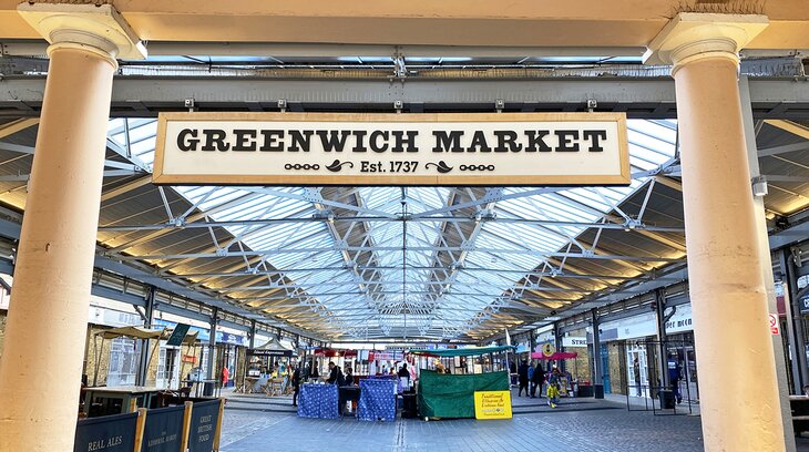 Greenwich Market on elinvoimainen taiteen ja käsityön markkinat 1830 -luvulle. Vaikka vain tuotemarkkinat, siinä on nyt myös yli 120 kioskia, jotka myyvät erilaisia tavaroita, mukaan lukien antiikki, taiteet ja käsityöt, keräilyesineet sekä ruokakojit. Jos tunnet overhishia, hyppääCrosstown -munkkejamaukasta herkkua ja espressoa.