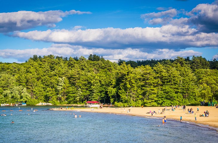 New Hampshiressä voi olla vain 13 mailia rannikkoa, mutta siinä on runsaasti rantoja kaikkialla. New Hampshiren järvien alue hallitsee valtion keskustaa ja tarjoaa melkein loputtomia paikkoja jäähtyä ja rentoutua kesällä.