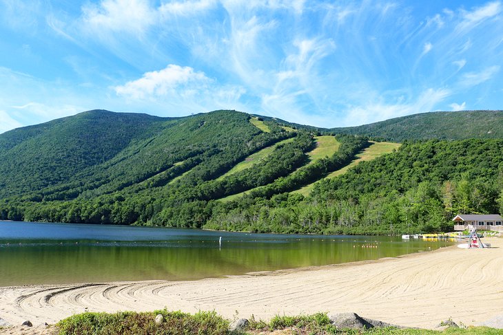 Järvi istuuCannon Mountain Ski AreaRinteet, ja turistit voivat nauttia upeista näkymistä järvelle ja ympäröiville vuorilleIlma raitiovaunu, hiihtoalueen hallinnassa.