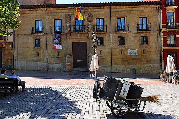 San Tirso -kirkon eteläpuolella Calle de Santa Ana on 18th-vuosisadan barokkiVelarden palatsi, joka on nyt Oviedon kuvataidemuseon kokoelmat.