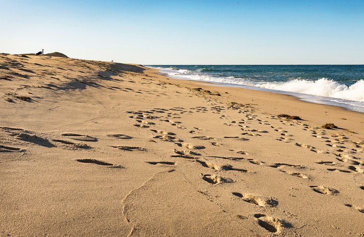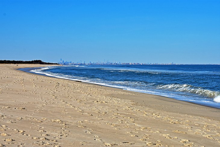 Jersey -rannan pohjoispäässä, josta on näkymät New Yorkin taivaanrantaan, Sandy Hook Beach on pitkällä, matalalla maa -alueella, todella saarella, joka on kytketty mantereelle sillan kautta. Ihastuttavien hiekkarantojen mailin lisäksi,Sandy Hookin kansallinen virkistysalueSeitsemän mailin pyörätie, leirintäalueet ja vesiurheilulaitteet. Voit katsella runsaasti lintuelämää tai liittyä puistorungaan akanoottikierros.